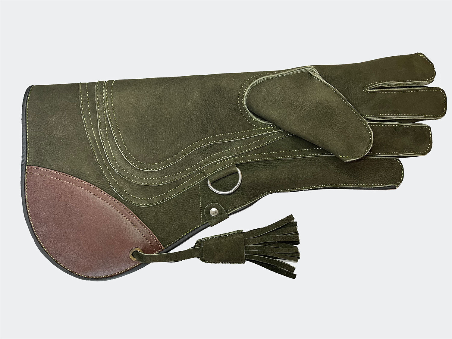 The Aguila-Extreme eagle falconry glove has been specially made for large "footprint" eagles and vultures. Measuring 17" inches in length, and covered with 4 layers of high quality supple leather on the footprint, this glove is a major benefit to handlers of large birds of prey.